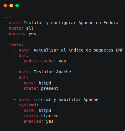 Esta tarea instala el paquete httpd, que es el servidor Apache en Fedora.
