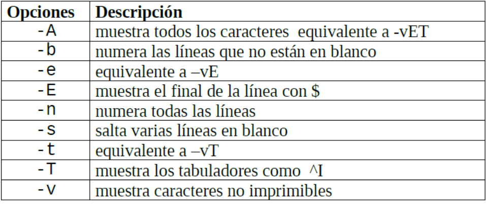 Sintaxis: cat [opciones] [archivos]