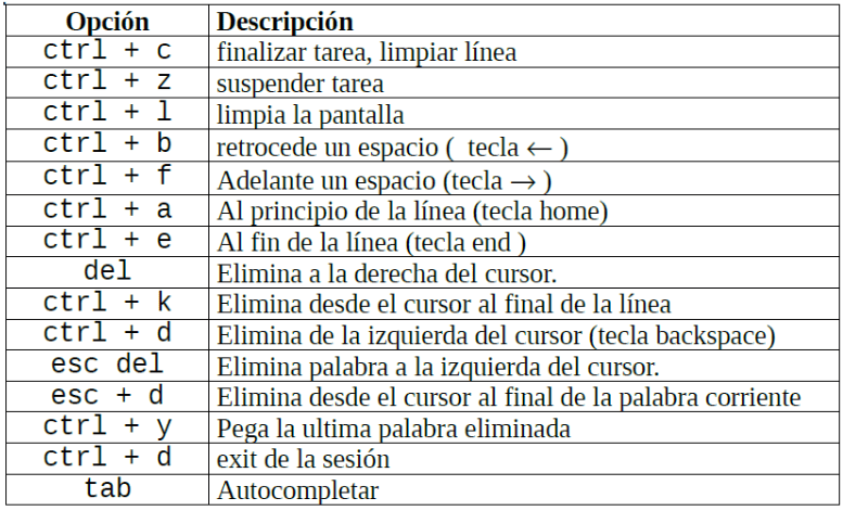 Atajos de teclado en la SHELL del sistema: