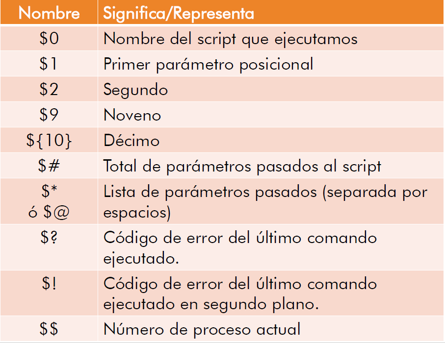 Se ingresar a continuación del nombre del script y se separan por espacios.